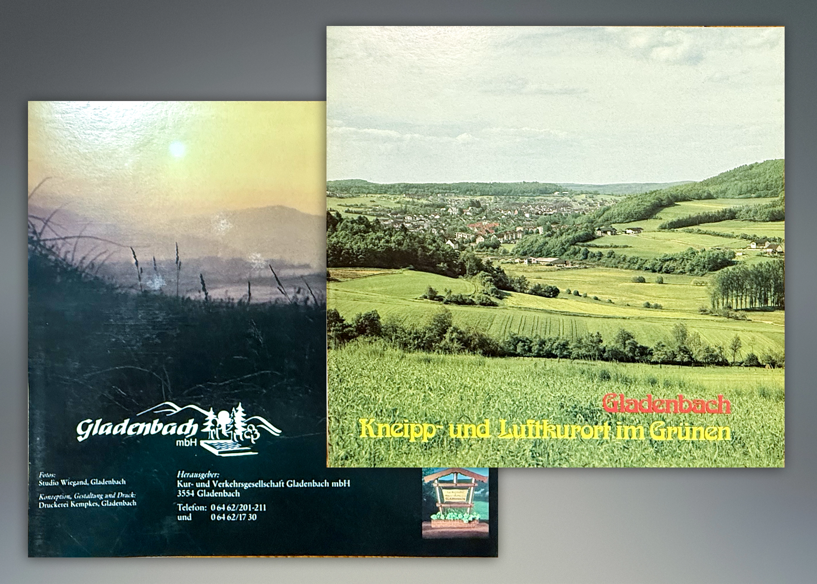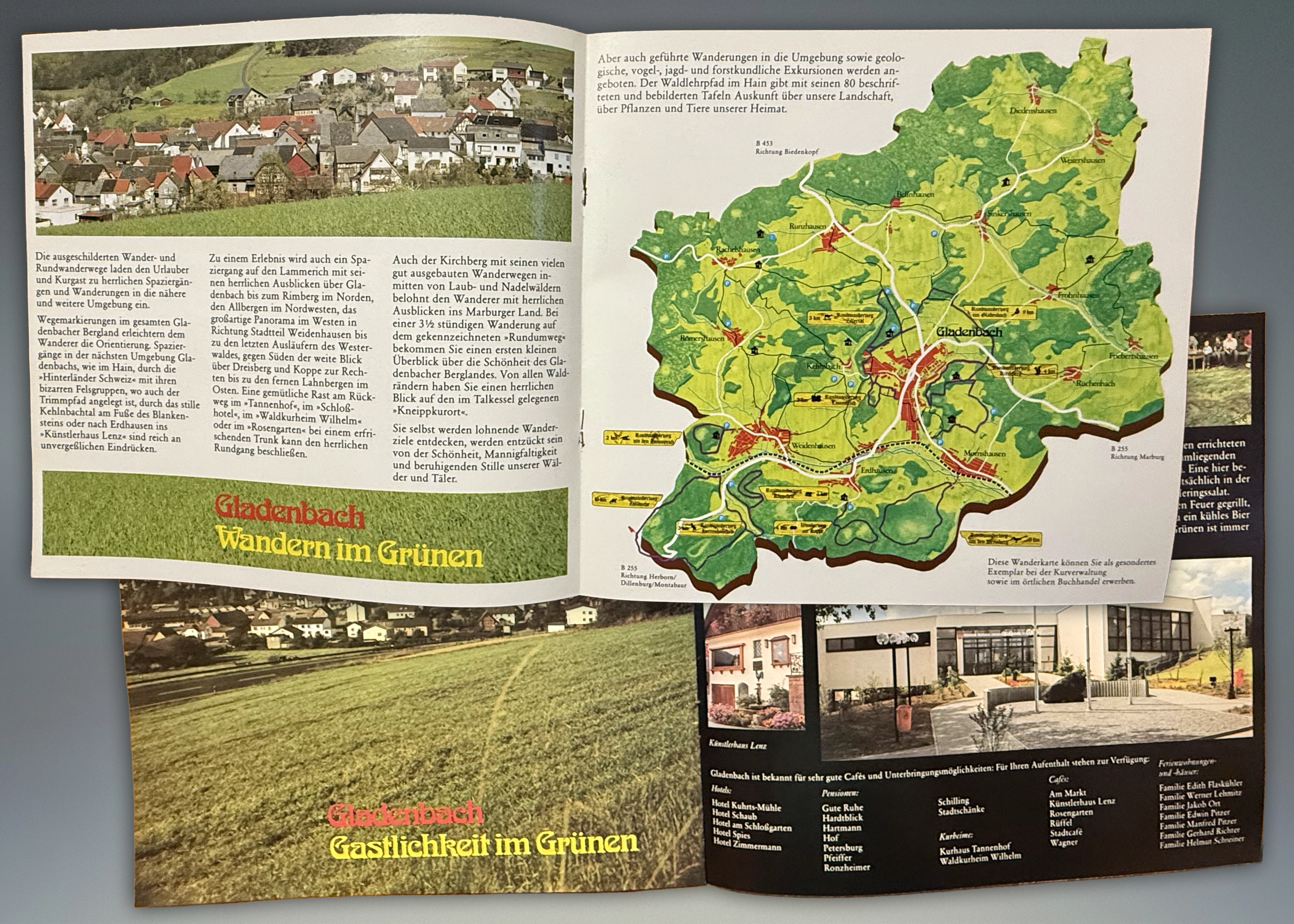 - 7 + 8) 1979: Gestaltung einer Fremdenverkehrsbroschüre mit Acrylfarben-Zeichnung einer Wanderkarte, die auch als separate großformatige Wanderkarte eingesetzt wurde