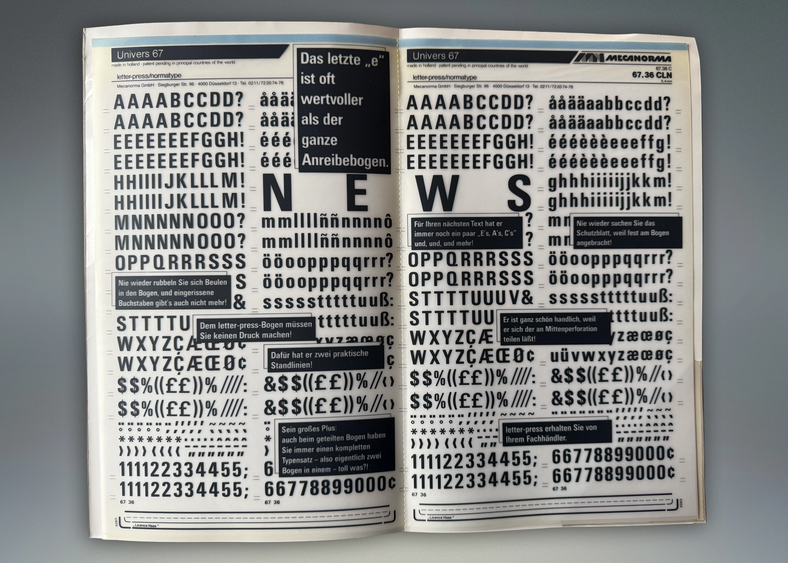 - 3) Mecanorma Abreibebogen-Muster (für Headlines)
