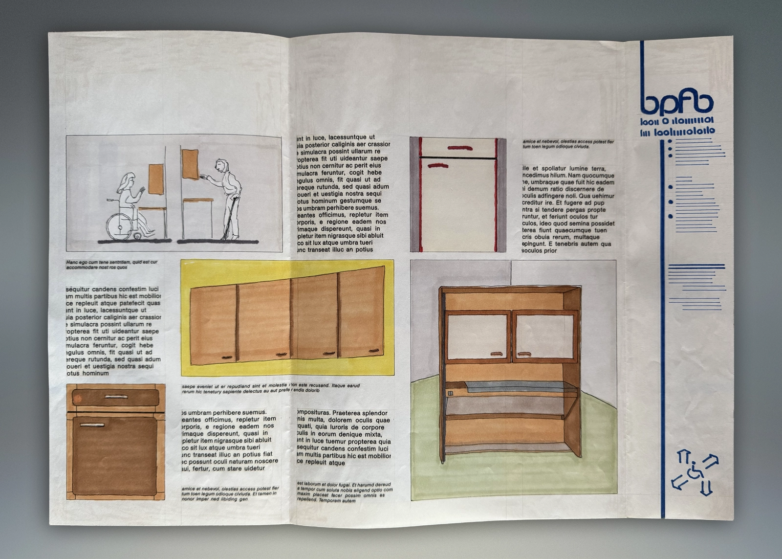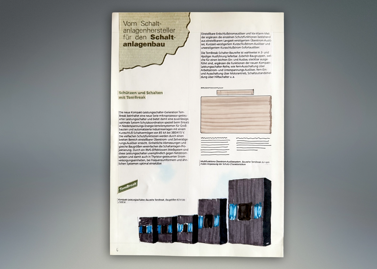 - 6) Entwurf Innenseiten-Layout einer Messebroschüre (1990)