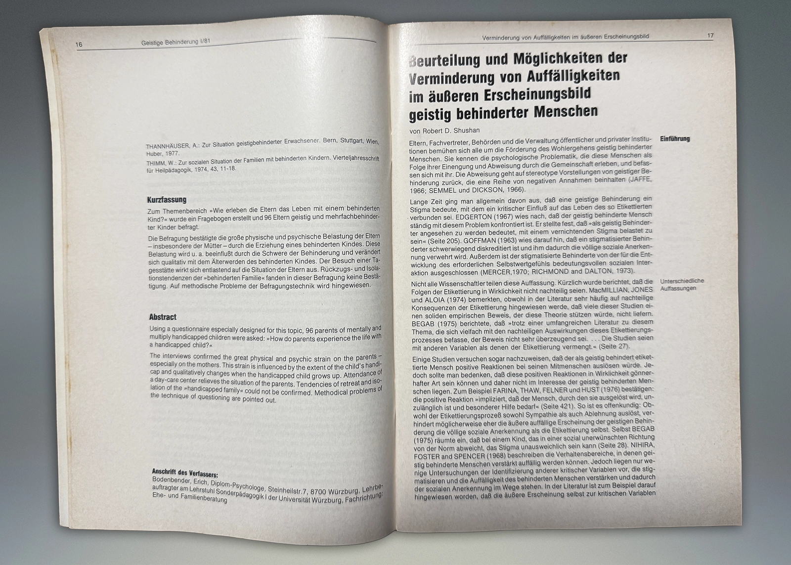 - 1–10 (1979): Neugestaltung einer Zeitschrift (entsprechend damaliger Technik Reinzeichnung der Titelseite mit Tusche (Rapidographen) auf Reinzeichenkarton, Headlines aus Abreibeschriften; Layout von Beispiel-Innenseiten mit gekauften Textbeispielen der Schriftgießerei (mit Fixogum auf gezeichnete Satzspiegel geklebt)