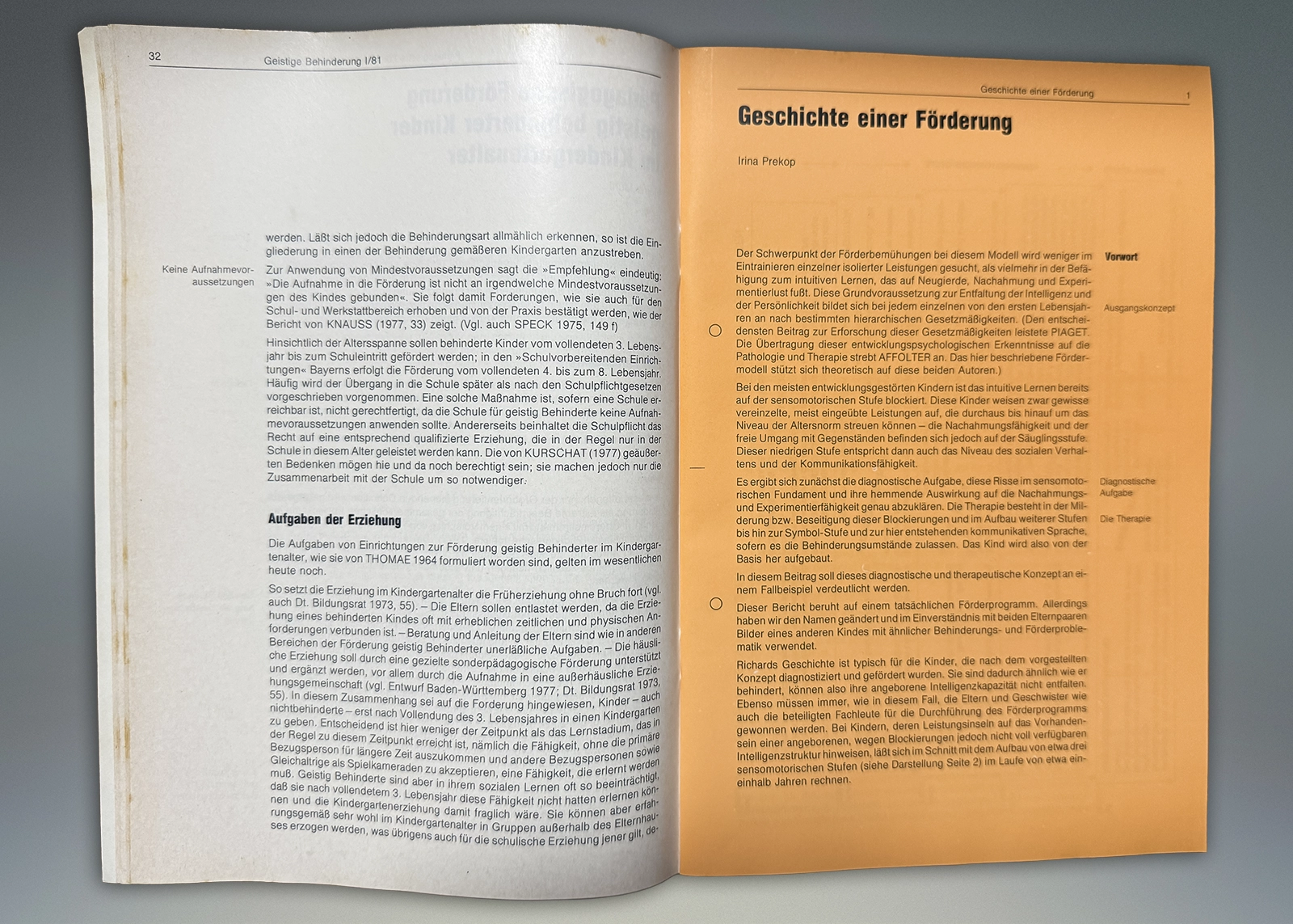 - 9) Links (1981) und rechts (1981): Gestaltung von 2 DIN A5-Broschüren, hier: Titelseiten