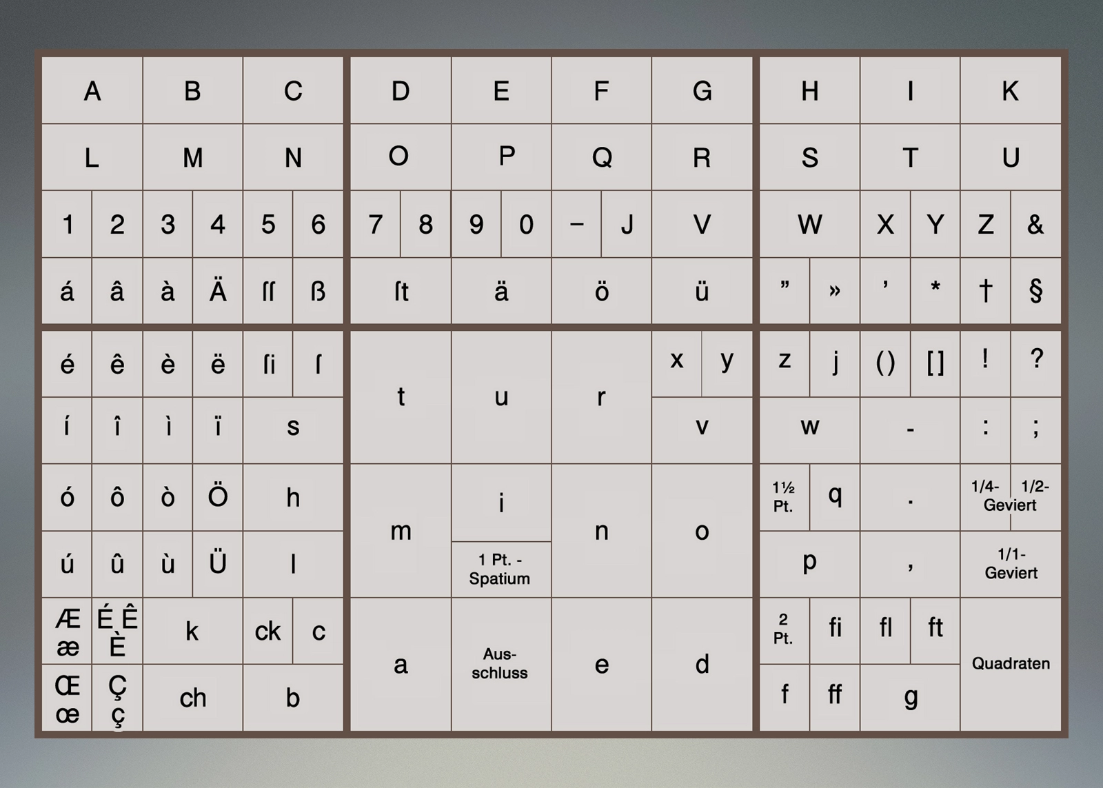 - 4) Setzkasten-Einteilung Antiqua-Schriften