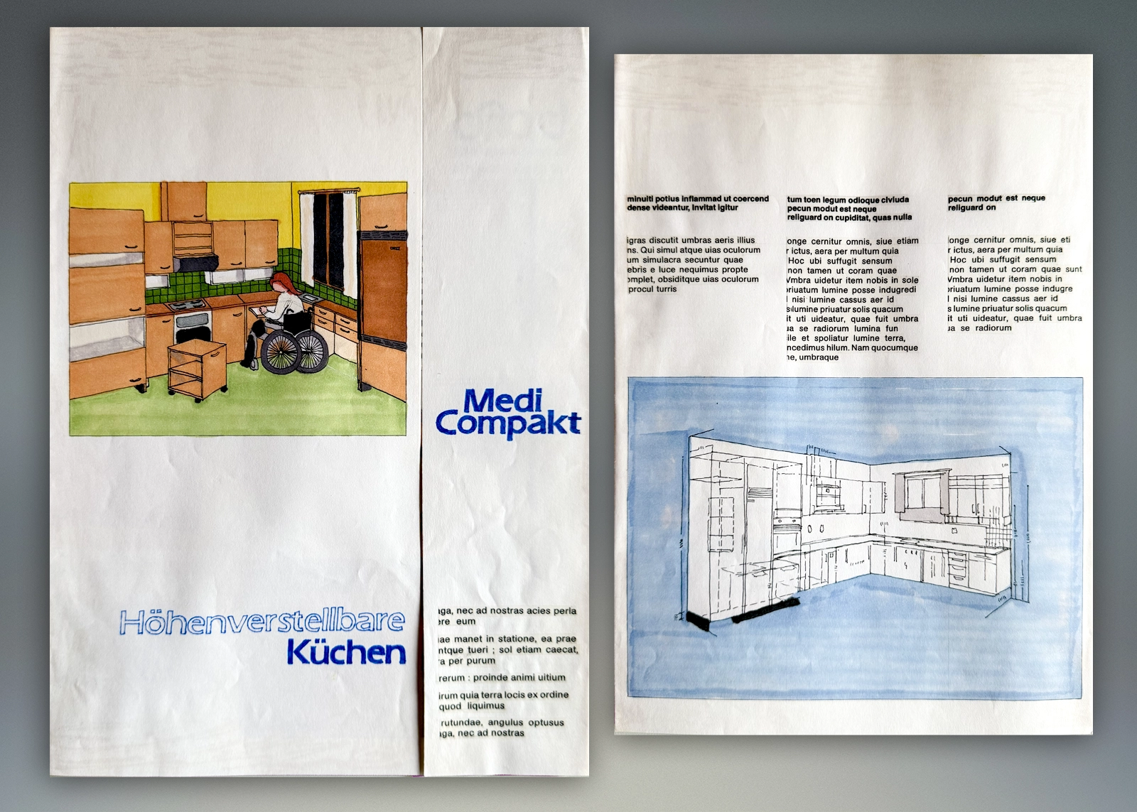 - 2 + 3) Entwurf eines Prospekts: 2) Außenseiten, 3) Innenseiten (1985)